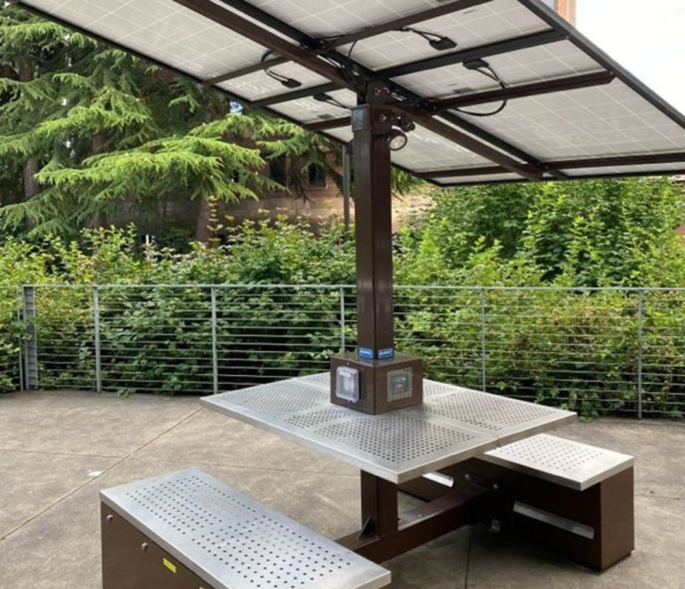 Estar en el jardín y tener que entrar dentro de la casa para cargar el móvil o el ordenador no es algo muy cómodo. Es por eso mismo por lo que unos diseñadores han inventado esta genialidad de mesa que sirve para cargar lo que necesites mientras disfrutar del sol y de la compañía.