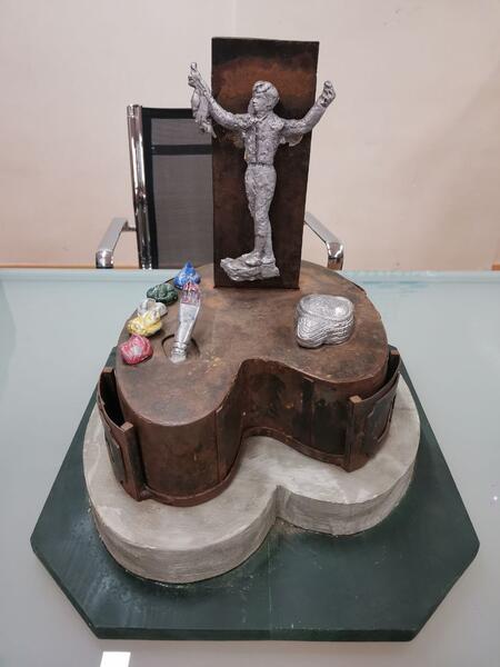 Según ha explicado Antonio Polo, escultor de la obra, el proyecto final tendrá un peso de 1.800 kilogramos en acero corten, con la figura de Sebastián Palomo Linares a tamaño real y representando, como ha señalado en esta comparecencia ante los medios, uno de los momentos que encumbró al maestro taurino: su salida por la Puerta Grande en Madrid.