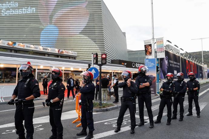 El exterior del Kursaal ha tenido que prescindir este año de público y únicamente los medios de comunicación, con las correspondientes distancias de seguridad entre ellos, han acompañado a los invitados en su entrada a la gala, entre los que estaban representantes institucionales como el consejero de Cultura y portavoz del Gobierno Vasco, Bingen Zupiria, el delegado del Gobierno en Euskadi, Denis Itxaso, el diputado general de Guipúzcoa, Markel Olano, y el alcalde de San Sebastián, Eneko Goia.