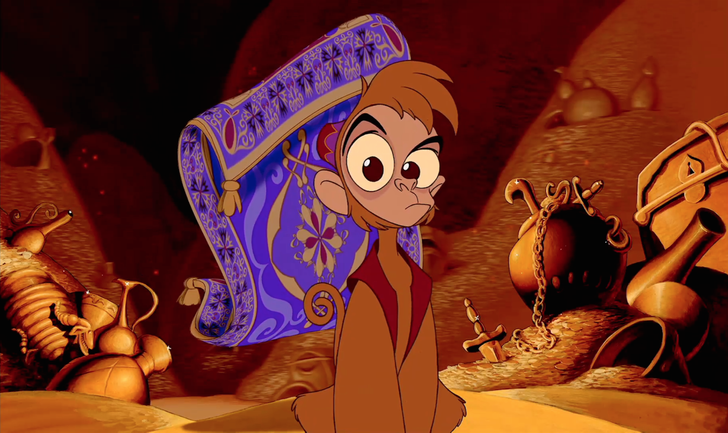 El travieso Abu es uno de los mejores amigos de Aladdín, junto con el Genio y la alfombra mágica. Aunque sea un animal que no habla, el mono expresa sus pensamientos por medio de expresiones faciales y corporales. Sin duda, Abu es uno de los compañeros animales más tiernos de las películas Disney.
