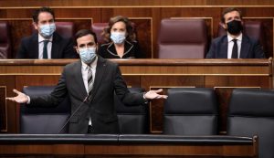 El ministro dijo querer ser coherente con la pregunta y ha emplazado la respuesta sobre el rey a la que más tarde iba a formular el diputado de Vox, limitándose a acusar a Rojas García de participar en un proyecto, el del PP, que es el de la trinchera, el negacionismo, el no a todo, no apoyar al Gobierno en la pandemia ni en unos presupuestos de reconstrucción". "Sé que a usted no le gusta el plan del Gobierno, pero es el que hay", ha concluido.