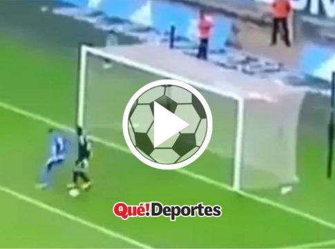 Este portero está realmente logo. Con el balón en el pie y sin la posibilidad de tomarla con la mano hace una la locura de tirar un caño al delantero que lo estaba marcado dentro del área chica. ¡Un loco total!, pero esta bien esta jugada peligrosa sale bien.