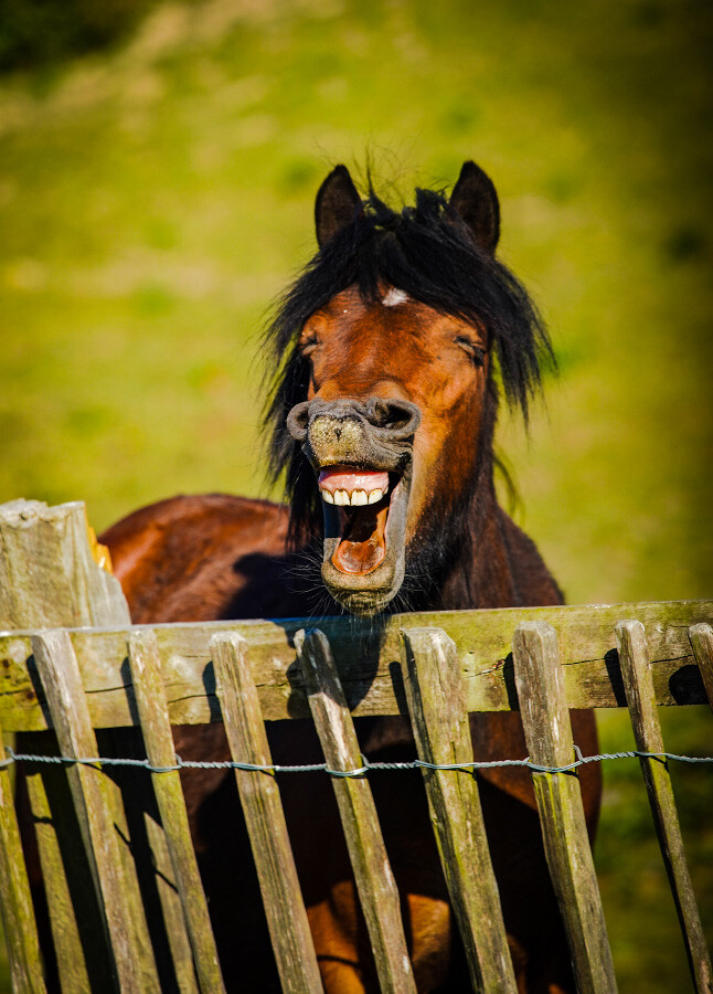 Un caballo desbocado, y nunca mejor dicho. Ahí le vemos enseñando encía y presumiendo de dentadura blanquísima y en perfecto estado. Podría ser una campaña publicitaria de una cadena de clínicas dentales.