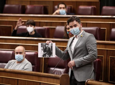 El PP se ha referido expresamente a las palabras que portavoz de ERC, Gabriel Rufián, pronunció durante la última sesión de control en el Congreso de los Diputado, donde aseguró que a Felipe VI le había votado Franco y que es el diputado 53 de Vox.
