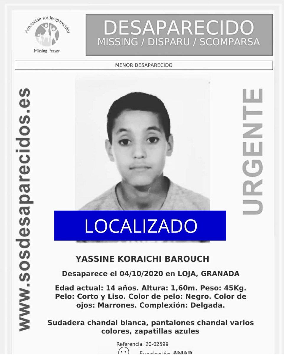 La Policía Local de Loja ha informado a través de su perfil oficial de Facebook, consultado por Europa Press, que Yassine Koraichi Barouch está "de vuelta a casa", de lo que el cuerpo de seguridad del Ayuntamiento se ha congratulado, tras sumarse en las últimas horas a las peticiones de colaboración ciudadana para su localización.