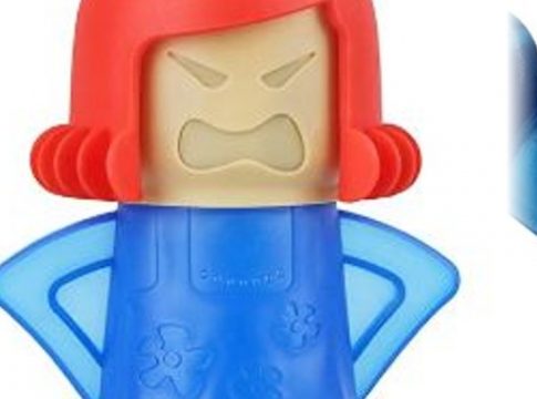 Quita la cabeza del muñeco y pon agua con vinagre. Después pon la cabeza de nuevo y mételo en el pato del microondas. En 7 minutos tendrás el microondas totalmente desinfectados. Así de fácil, sin productos químicos. No vas a tener que utilizar productos que puedan dañar el electrodoméstico y lo que es aun peor, ser perjudicial para la salud. Compra este producto aquí.