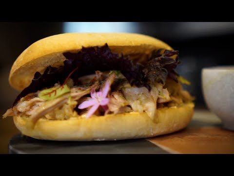 En el caso de su Paquito: “hemos elegido la pierna porque es de las más jugosas y menos típicas para hacer un bocadillo y lo hemos acompañado con queso ahumado, mayonesa de pimentón, ajada, brotes de rúcula y algo de picante”.