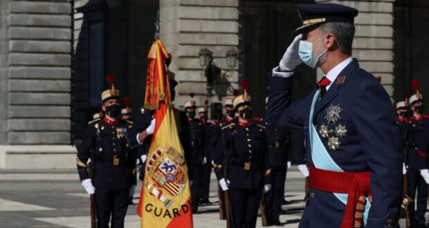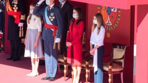 Los Reyes han presidido este lunes una atípica celebración del Día de la Fiesta Nacional, marcada por la pandemia y en un clima de tensión política que se ha reflejado en los abucheos al Gobierno proferidos por miles de ciudadanos que se han congregado frente al Palacio Real.