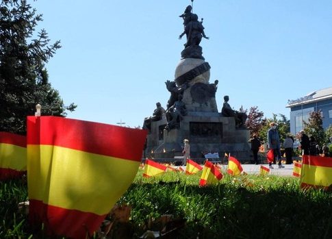 Este 12 de octubre, la presencia de los simpatizantes de Vox ha dejado la estatua y la plaza rodeada de 'banderitas' de España, en un acto similar al que se ha realizado en los últimos días en otras capitales españolas.