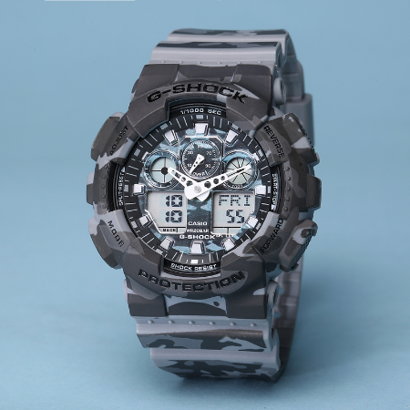 Este reloj es un estilo al modelo de Casio. La correa está mimetizada con un estilo de camuflaje. Tiene múltiples funciones como cronómetro, cuenta atrás, alarmas, calendario, luz.