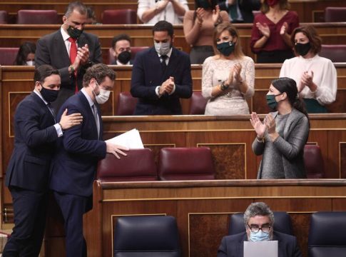Diputados de Vox han recibido airados el discurso del presidente del PP, Pablo Casado, en contra de su moción de censura y le han reprochado haber caído en un "Frente Súper-Popular" junto al Gobierno de PSOE y Unidas Podemos y sus socios de investidura. "Que te vaya bonito", han deseado al líder de los 'populares' despreciando sus críticas a Vox.