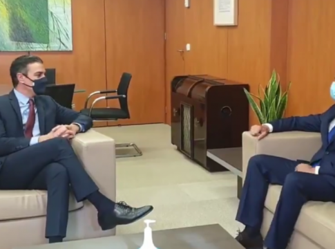 "Apostamos por una solución política", afirman en su mensaje, recogido por Europa Press, que acompañan de unas imágenes en las que se ve a Sánchez y López conversando, primero de pie, y después sentados en sendos sillones, y con la mascarilla puesta.