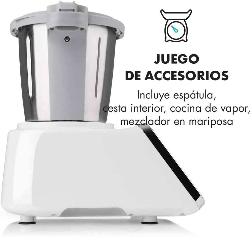 Otro robot de cocina fabricado en Alemania, y capaz de plantar cara a Thermomix, es Klarstein GrandPrix, nombre que seguro te recuerda a aquel programa español que disfrutábamos cada verano años atrás. Este producto es una verdadera bestia que no hay que tomarse a broma, más que nada porque dispone de modos que cubrirán todas tus necesidades en la cocina.