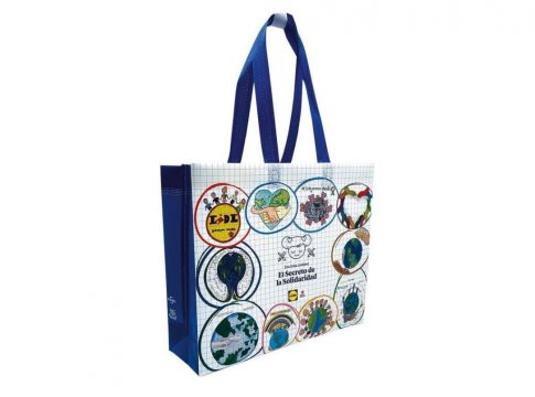 Lidl ha puesto a la venta un millón de bolsas solidarias en sus más de 600 tiendas en España por 0,50 euros la unidad. Se trata de cuatro modelos distintos de bolsas de rafia reutilizables que han sido diseñadas por niñas y niños de Save the Children.