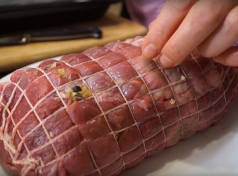 - Brida el redondo o pídele ayuda a quien sepa hacerlo, para luego sazonarlo con sal y pimienta al gusto, o cualquier otra especia que te guste.