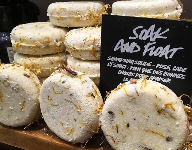 En cuanto a los sólidos, uno de los que deberías probar es el Soak and Float de Lush. De aroma muy dulce te ayuda a erradicar problemas capilares como eccema, psoriasis o caspa, además, calma tu cuero cabelludo.