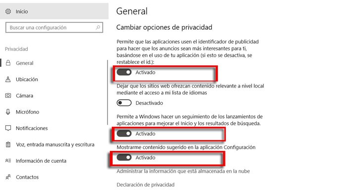 2Configurar la privacidad de Windows 10