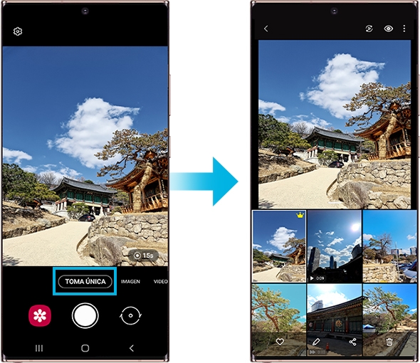 Esta función la encontrarás dentro de la Cámara, en el modo de toma única que encontrarás en el menú. Aquí podrás configurar el tiempo de captura gracias al temporizador que aparece en el menú de la cámara. Por último, pulsa en el obturador, en cuanto te dispongas a realizar una panorámica, la cámara se encargará de capturar las mejores tomas. Una vez finalizado, verás los resultados óptimos del momento que has capturado.