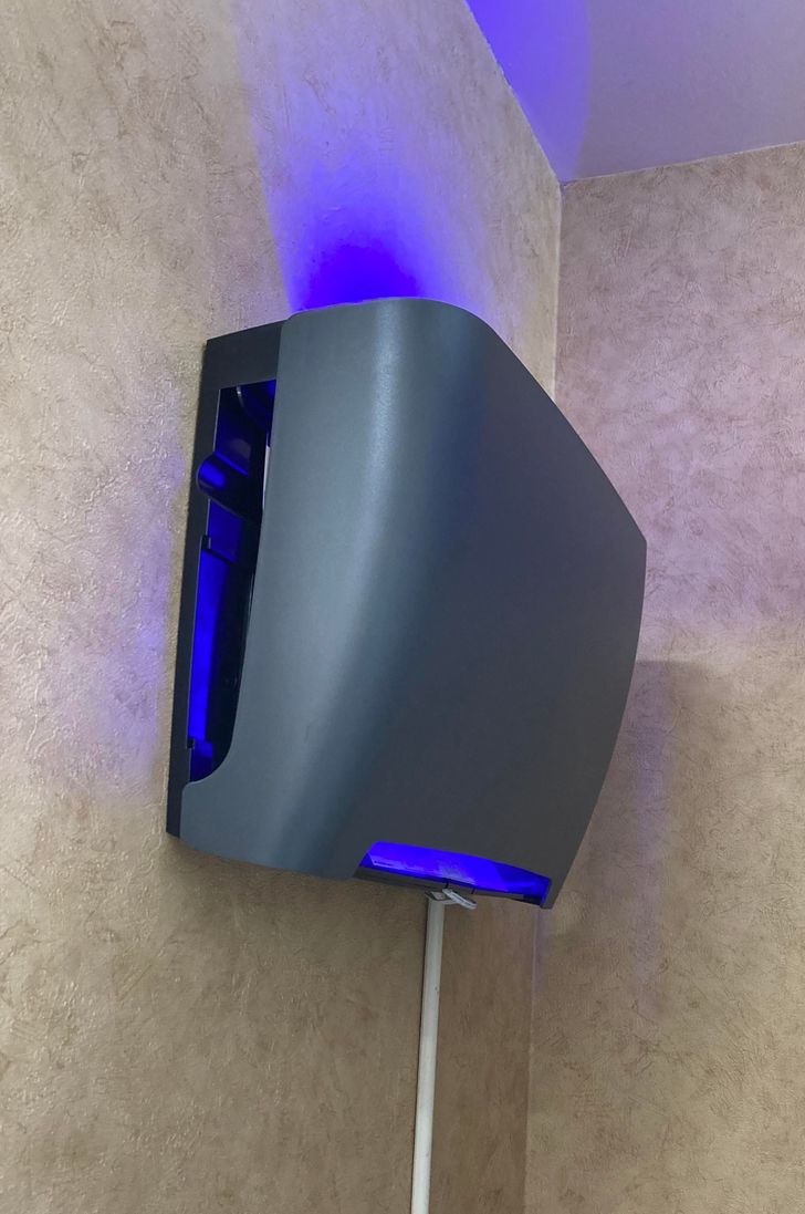 Este objeto en realidad es una trampa para insectos. Gracias a las luces, los insectos van hacia el aparato y el interior está lleno de pegamento. Allí se quedan pegados los insectos y no molestan más.