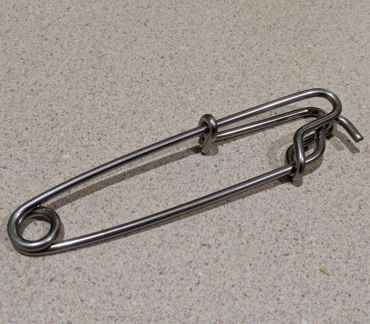 Este imperdible puedes habértelo encontrado en una bolsa de herramientas y utensilios de cocina. Es metálico y se puede comprimir si lo agarras, sin embargo, no es un imperdible como los que tenemos en mente.