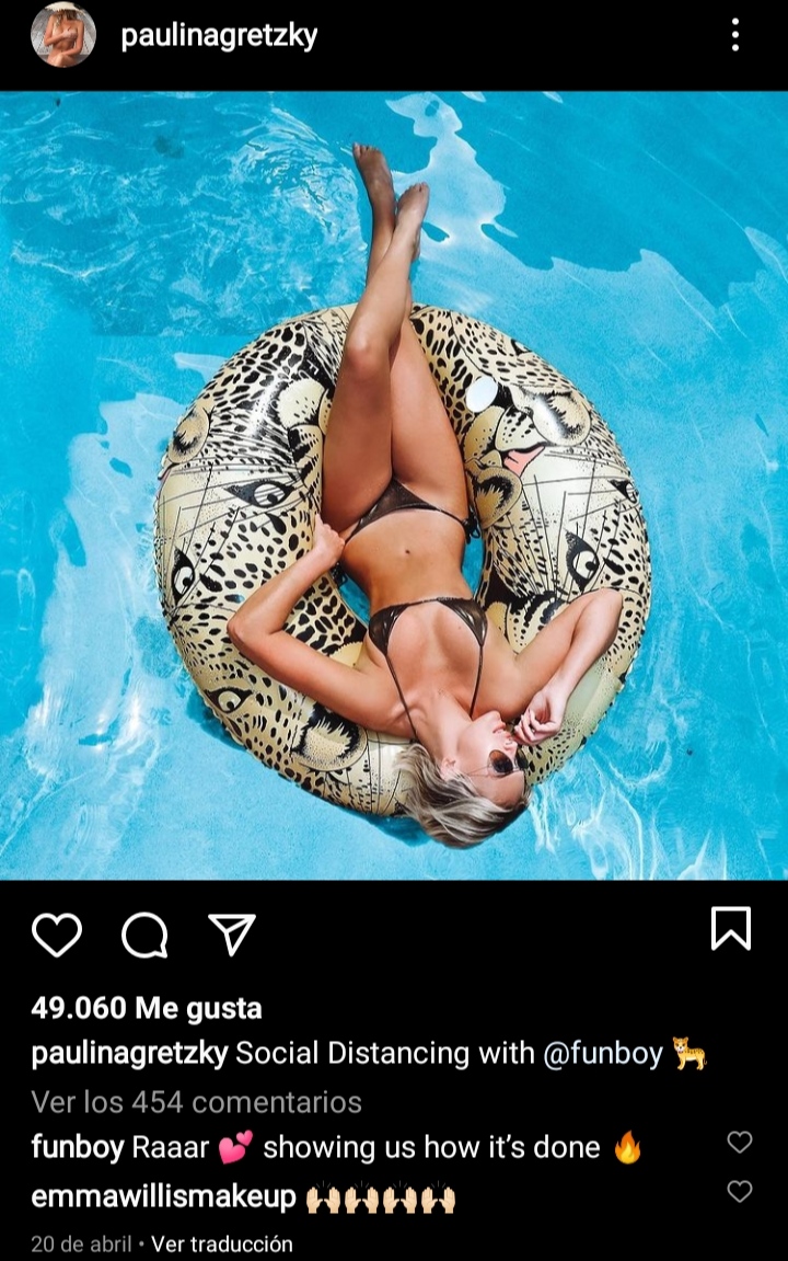 Y así lo demostró Paulina Gretzky con la foto que subió a sus redes sociales a principios de año, en la que se le ve posando ante la cámara y enseñando la belleza total de sus atributos mientras flota por el agua de su piscina.