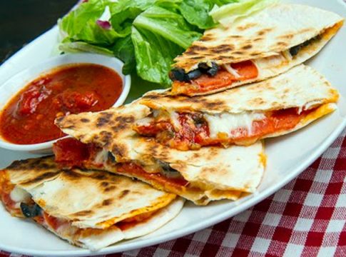 Quesadillas con guacamoles y tomates horneados especiales