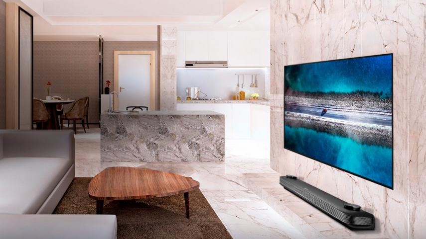 Terminamos con la LG OLED65W9 que viene a ser la Smart TV más premium de LG. Este televisor es el tope de gama y es de los mejores de todas las marcas en este rango de precios. Este televisor se pega en la pared y queda totalmente plano, no hay peanas que lo sujeten. Hay un tamaño de 65 pulgadas y otro de 77 y ambos tienen la tecnología más puntera. Ocupa nada más que 3,85 milímetros de grosor.