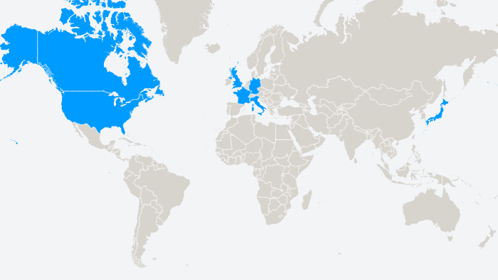 También conocido como el Grupo de los Siete, el G7 es un grupo de países con un gran peso político, militar y económico el cual representa más del 64% de la riqueza global, el cual está conformado por Francia, Estados Unidos, Italia, Reino Unido, Alemania, Japón y Canadá, además de la Unión Europea con representación política.