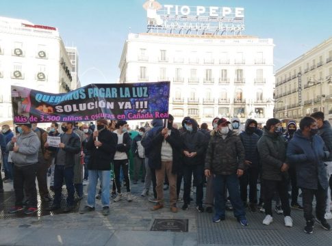 Decenas de vecinos y, sobre todo, vecinas de Cañada Real se han plantado ante la sede de la Comunidad de Madrid, en la Puerta del Sol, ante la falta de suministro eléctrico continuado desde hace 65 días reclamando a las administraciones y a Naturgy los mismos derechos que tiene el resto de la ciudadanía porque son "gente trabajadora" que está "enfermando".