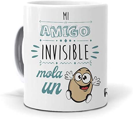 Si ves que esta solución te vale, has de saber que Amazon te ofrece este modelo, con la inscripción 'Mi amigo invisible mola un huevo' a 12,99 euros.