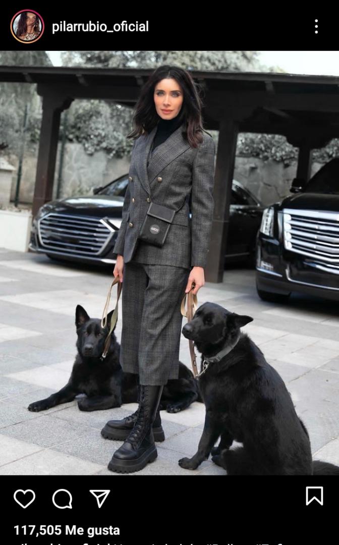 Su última publicación ha causado furor, no solo por lo espectacular que luce Pilar sino por sus dos acompañantes, sus mascotas Bella y Zafiro. Dos perros de raza pastor aleman color negro que combinan a la perfeccion con el espectacular conjunto que lleva la modelo.