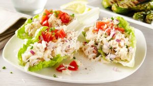 - También puedes tenerlos encima de una ensalada con aderezo de yogur, como una cena ligera y baja en carbohidratos.