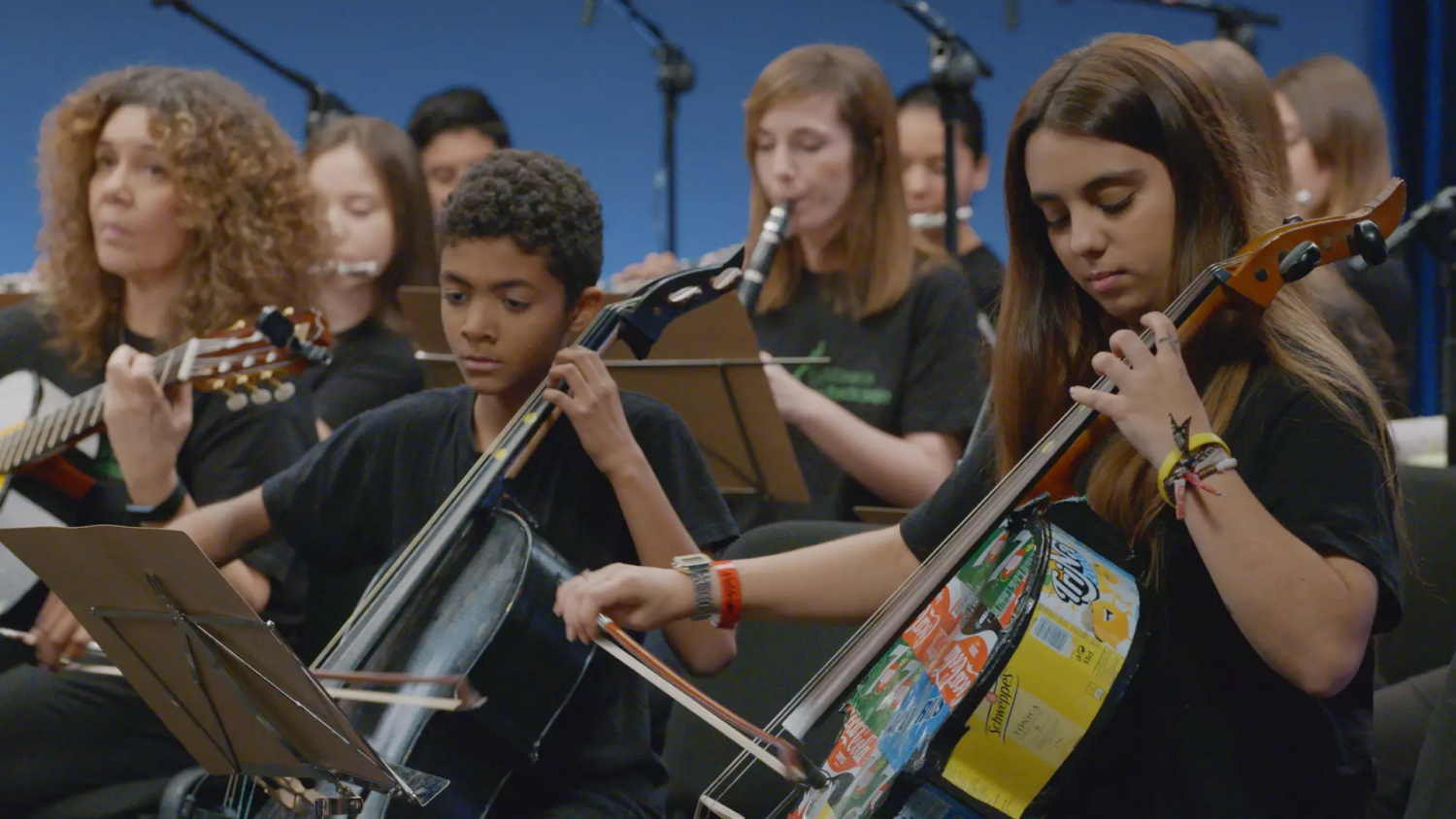Los instrumentos de la orquesta han sido realizados, igual que los de Cateura, por el luthier Fernando Solar a partir de bidones, latas, cubiertos, cajas de cereales, tenedores o monedas, también se da la oportunidad de fomentar las segundas vidas y concienciar sobre la importancia de la economía circular.