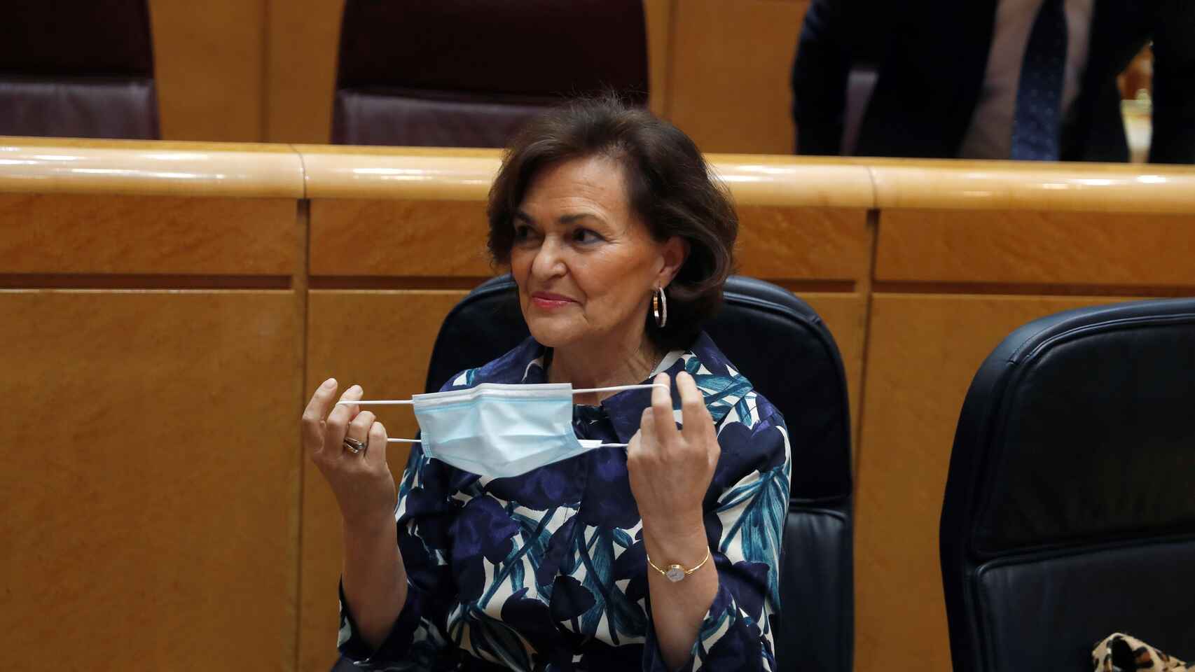 La vicepresidente primera del Gobierno, Carmen Calvo, ha hecho este lunes un llamamiento a la tranquilidad frente a la expansión en Reino Unido de una nueva cepa de Covid-19 porque España "lleva protegida mucho tiempo" por la exigencia de tener una prueba PCR negativa para entrar en nuestro territorio.