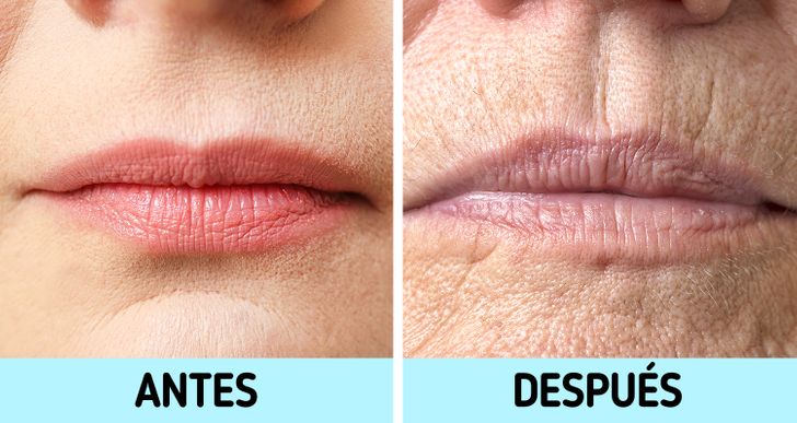 Así que, si eres de fotos con los morritos para fuera, mejor que dejes de hacerlo si no quieres tener arrugada toda la piel alrededor de ellos. Los labios deshidratados también suelen agrietarse y perder su color natural. Son otros signos visibles de la edad.