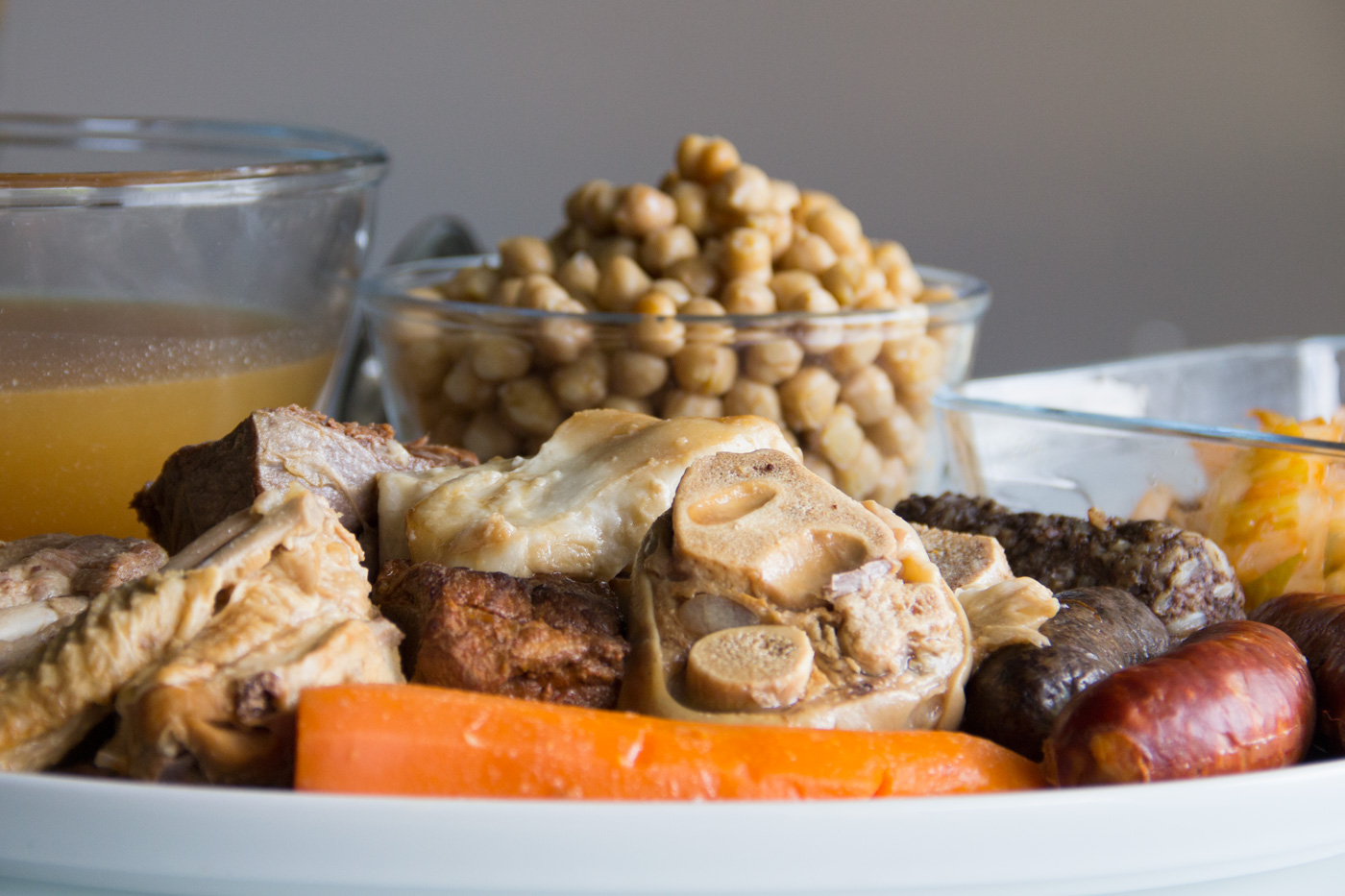 En cuanto a servirlo, se hace en los también tradicionales tres vuelcos: primero se toma la sopa con los fideos, segundo los garbanzos y las verduras y por último las carnes y chacinas. A priori se comen en el orden en que se sirven, pero eso ya es cuestión de gustos.