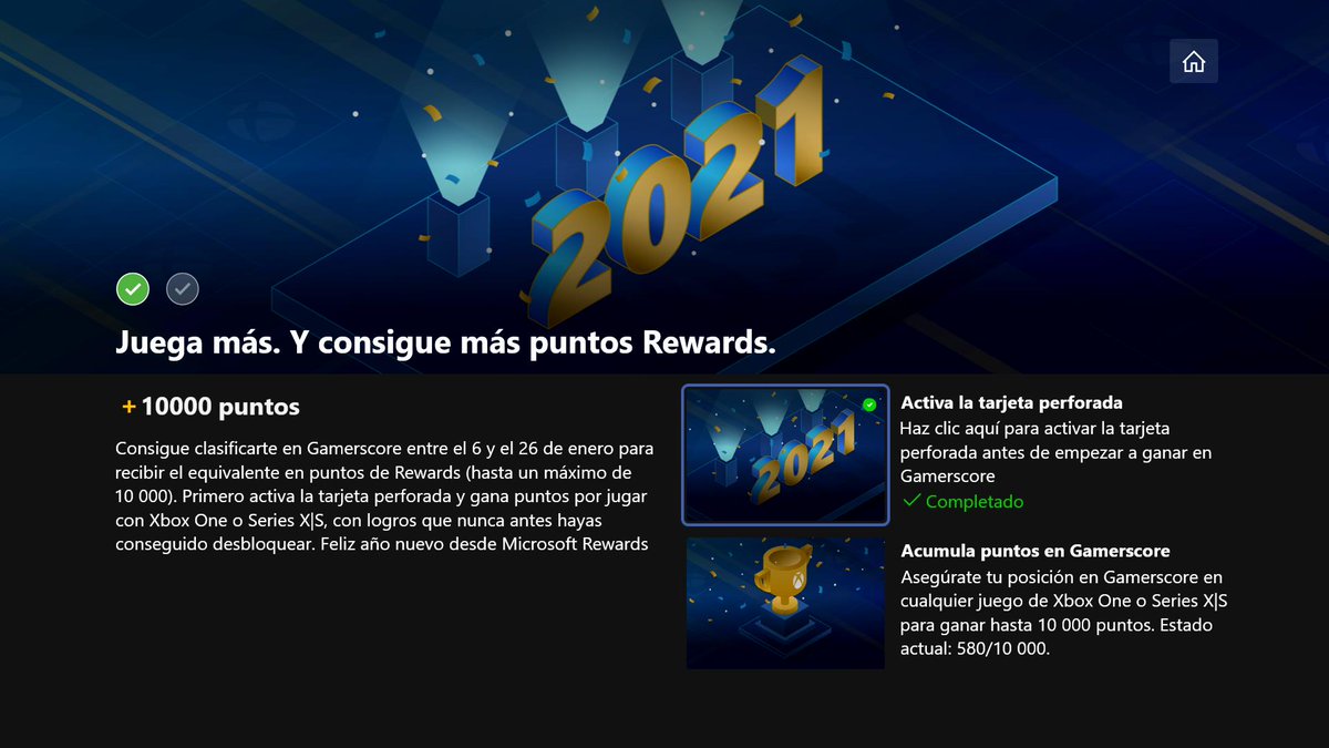 Si no se ha canjeado la tarjeta, no podrás empezar a obtener puntos para los 10.000 Microsoft Rewards. Tan solo deberás jugar a tus juegos favoritos de Xbox e ir ganando logros, con lo que además de tu Gamerscore, va a subir tu cuenta de Rewards. Eso sí, necesitarás llegar en estos 20 días a los 10.000 puntos de Gamerscore, o de lo contrario, no te darán nada.