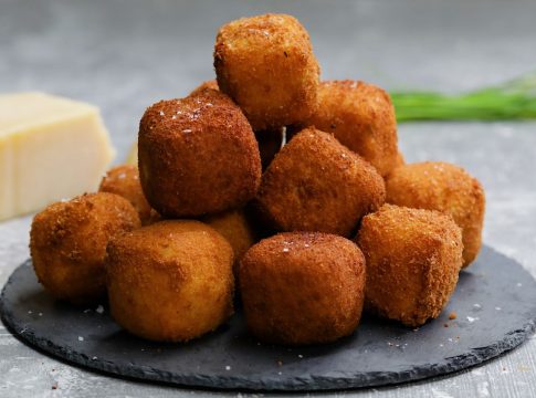 - Fríe cada lado del cubito hasta que estén dorados por cada lado. Hornea por 10 minutos a 160 ° C (325 ° F) para calentar completamente.