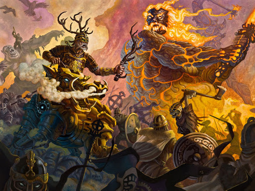 Ragnarok de acuerdo a la mitología nórdica, es la batalla del fin del mundo que será emprendida por los gigantes del fuego liderados por Surt y por los grandes dioses Esir. Ambos serán liderados por Odín, y posteriormente se unirá también los Jotuns comandados por Loki.