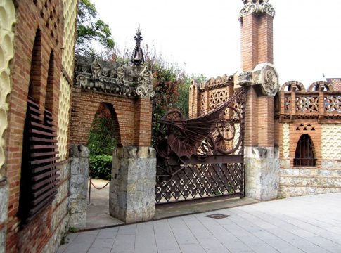 Se trata del primer encargo que recibió Gaudí de su mecenas Eusebio Güell, un singular edificio octogonal con dos cuerpos adyacentes, realizado con muros de tapia y con piezas decorativas a modo de sebka árabe y ladrillo de dos colores.