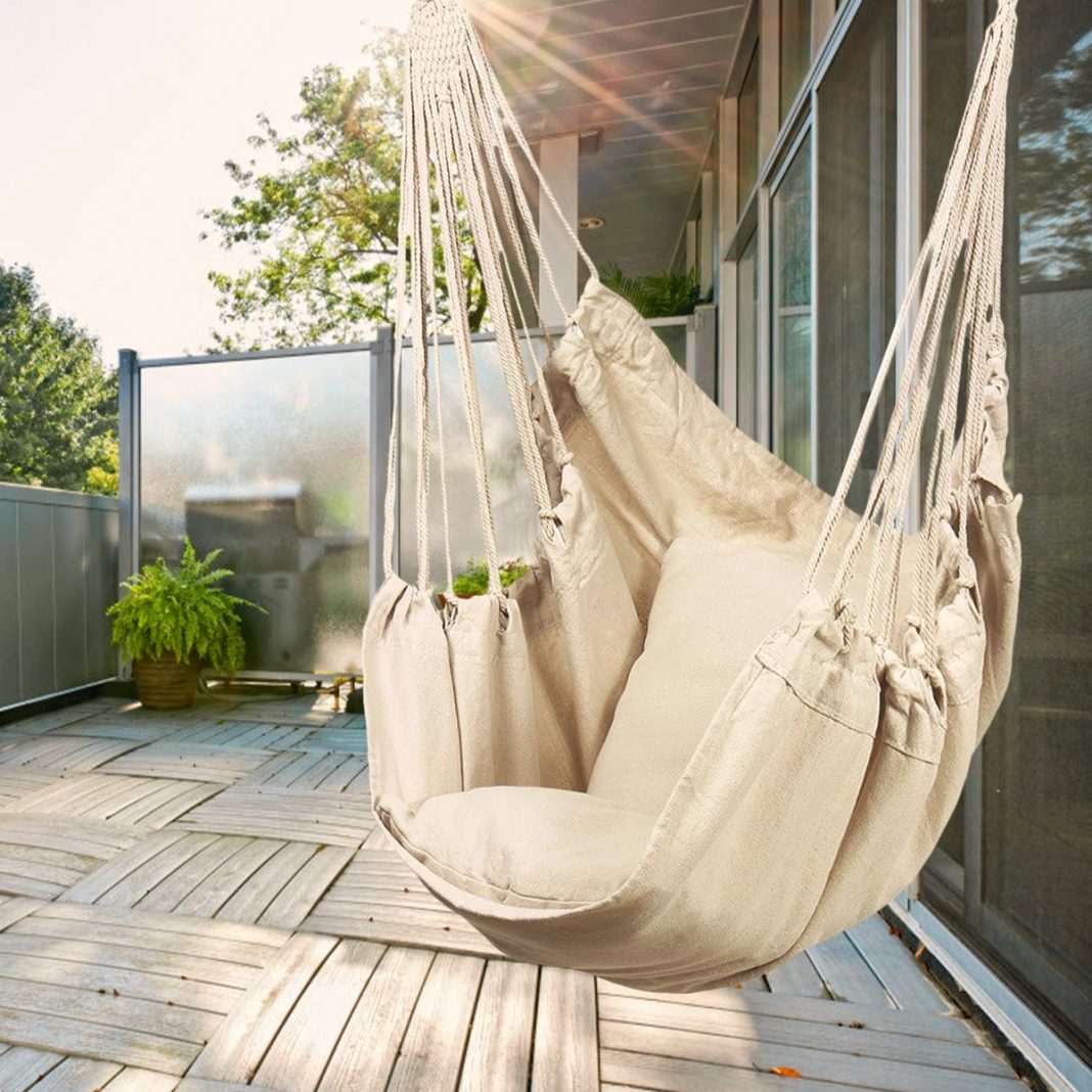 Relájate en esta silla hamaca que puedes poner en tu casa, donde podrás evadir la mente y el cuerpo y, si quieres, imaginar que estás en una playa paradisíaca. También es un buen lugar donde sentarte a relajarte mientras disfrutas de tu lectura y el balanceo.