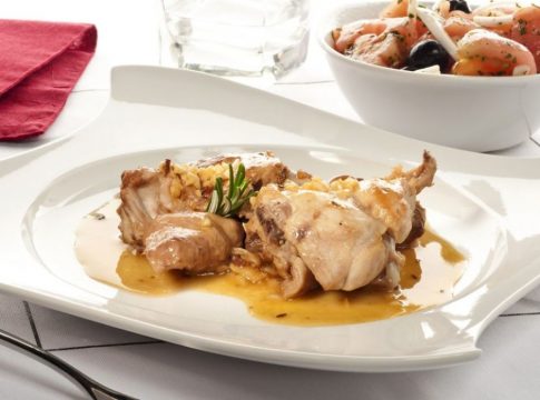- Regresa el conejo a la sartén, agrega el jugo de limón y calienta la carne. Sírvelo con las verduras, espolvoreado con tomillo.
