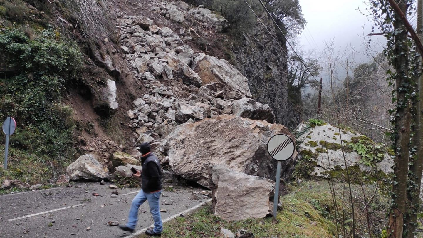 Además, un desprendimiento en el kilómetro 40.9 de la carretera AS-29 (San Antolín de Ibias-La Regla), a su paso por Cangas del Narcea, obligó a cortar la calzada y habilitar un paso alternativo durante el puente festivo de La Constitución.