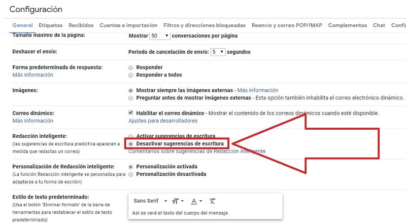El mismo sistema automatizado te dará las sugerencias, y con un solo clic ya envías ese mensaje de forma sencilla. Tienes que activarlo ahora mismo. Para ello, lo debes ubicar en la Configuración, General, Redacción Inteligente, y luego de esto activas la opción de Respuesta Inteligente.