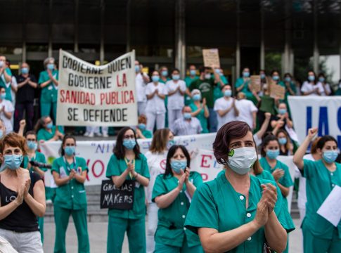 Allí, los manifestantes se han encadenado unos a otros para simbolizar la concatenación de contratos y la "precariedad" del sector; especialmente en el Zendal, donde han asegurado que los trabajadores viven "bajo amenaza". "Los sanitarios encadenan contratos eventuales y temporales durante años. Eso es indigno y queremos encadenarnos a una estabilidad porque así es difícil plantear un futuro", ha aseverado García.