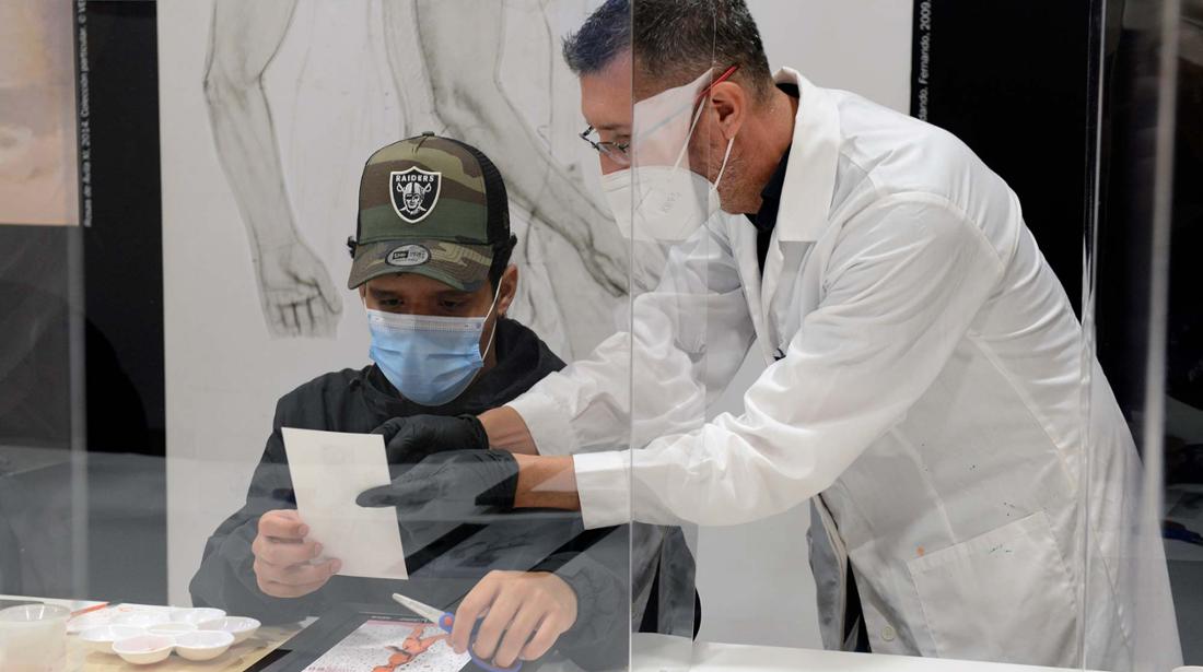 En el taller didáctico 'MotivArte', los participantes realizan una visita guiada a la exposición y trabajan con una de las temáticas presentes en la obra del pintor: los estudios que realiza sobre el cuerpo humano.