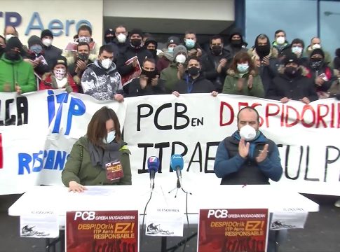 En rueda de prensa a las puertas de la planta de PCB en Barakaldo, el comité de empresa ha denunciado que este lunes, 1 de febrero, la dirección de ITP Aero Casting "ejecuta el despido colectivo de 83 trabajadores que anunció hace varias semanas".