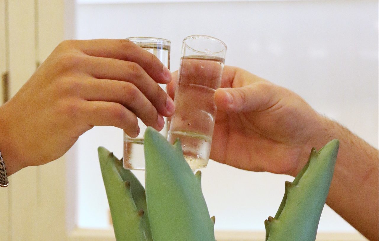 Por las tardes es hora del mezcal, bebida alcohólica tradicional de México pero aún bastante desconocida en nuestro país que se elabora a partir de la destilación del corazón del maguey, planta también conocida como agave –y que es también es el origen del tequila, aunque este requiere de tiempos más cortos y procesos menos artesanales–. La piña de agave de la que procede el mezcal es de variedad silvestre y de lento crecimiento, lo que convierte esta bebida en escasa y muy exclusiva.