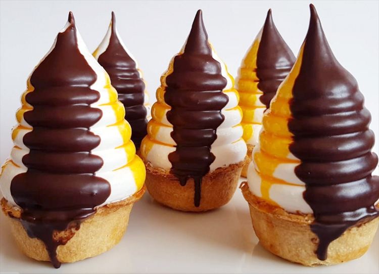 También se ven muy bien, si buscas algo diferente para servir en un té de la tarde. El merengue perfectamente picado sobre una natilla de huevo y rociado con chocolate derretido y una mezcla de yema de huevo dulce se ve impresionante, además de sabroso. Son uno de esos pasteles que se convierte en un icono para una ciudad y una región.