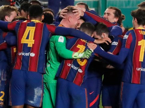 Barcelona: Ter Stegen, Jordi Alba, Lenglet, Araujo, Mingueza, Busquets, De Jong, Pedri, Dembelé, Braithwaite, Messi.